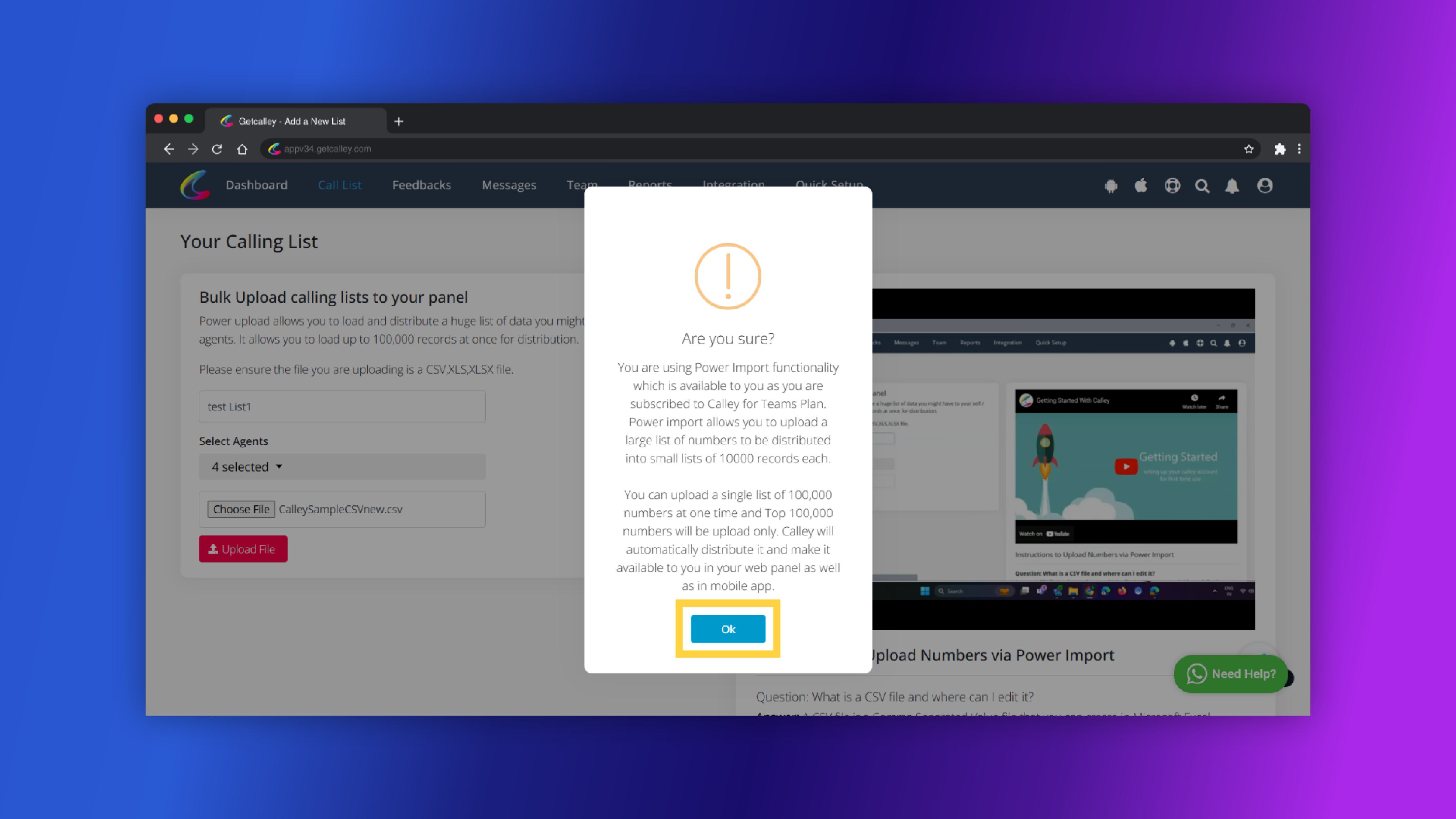 - List Uploaded successfully. Now agents can start making calls from there mobile using Calley app and Team Leaders can manage the Reporting of Calls made by agents.
